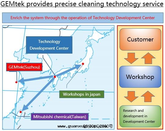 We have professional technology development center and 34 years precise cleaning practices of Shinryo in Japan; we have support of 23 years cleaning practices of Mitsubishi chemical(taiwan) in Taiwan of China. We have periodical technology communication meeting every year and make the technical cooperation in the three places obtain the best guarantee.