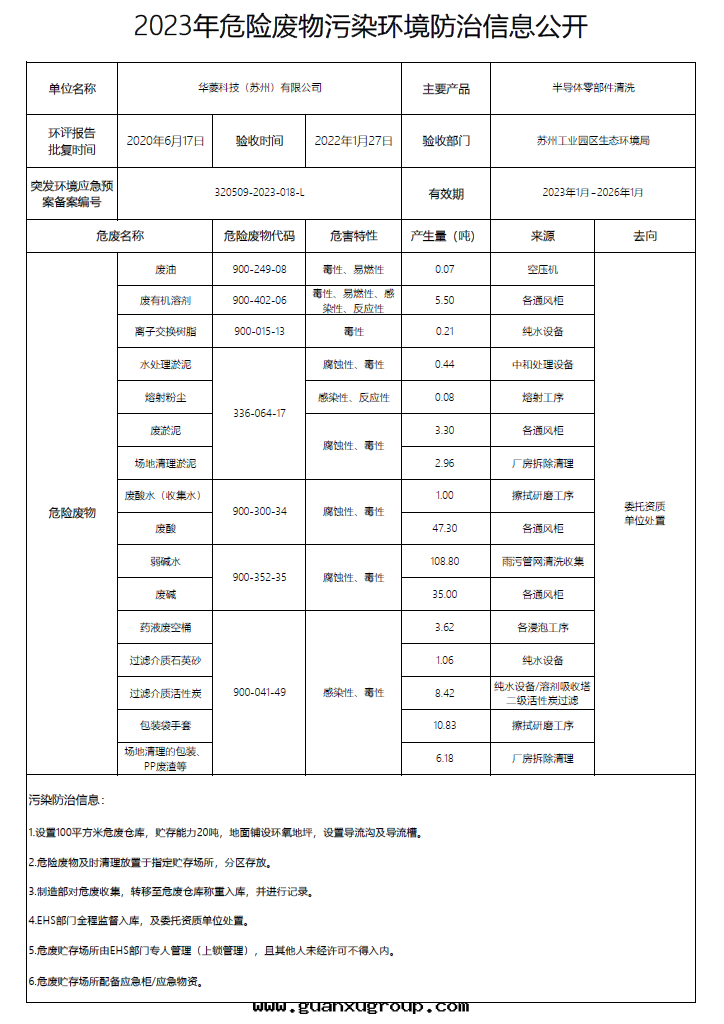 2023年(nián)危险廢物(wù)污染环(huán)境防治信(xìn)息公(gōng)開(kāi)
