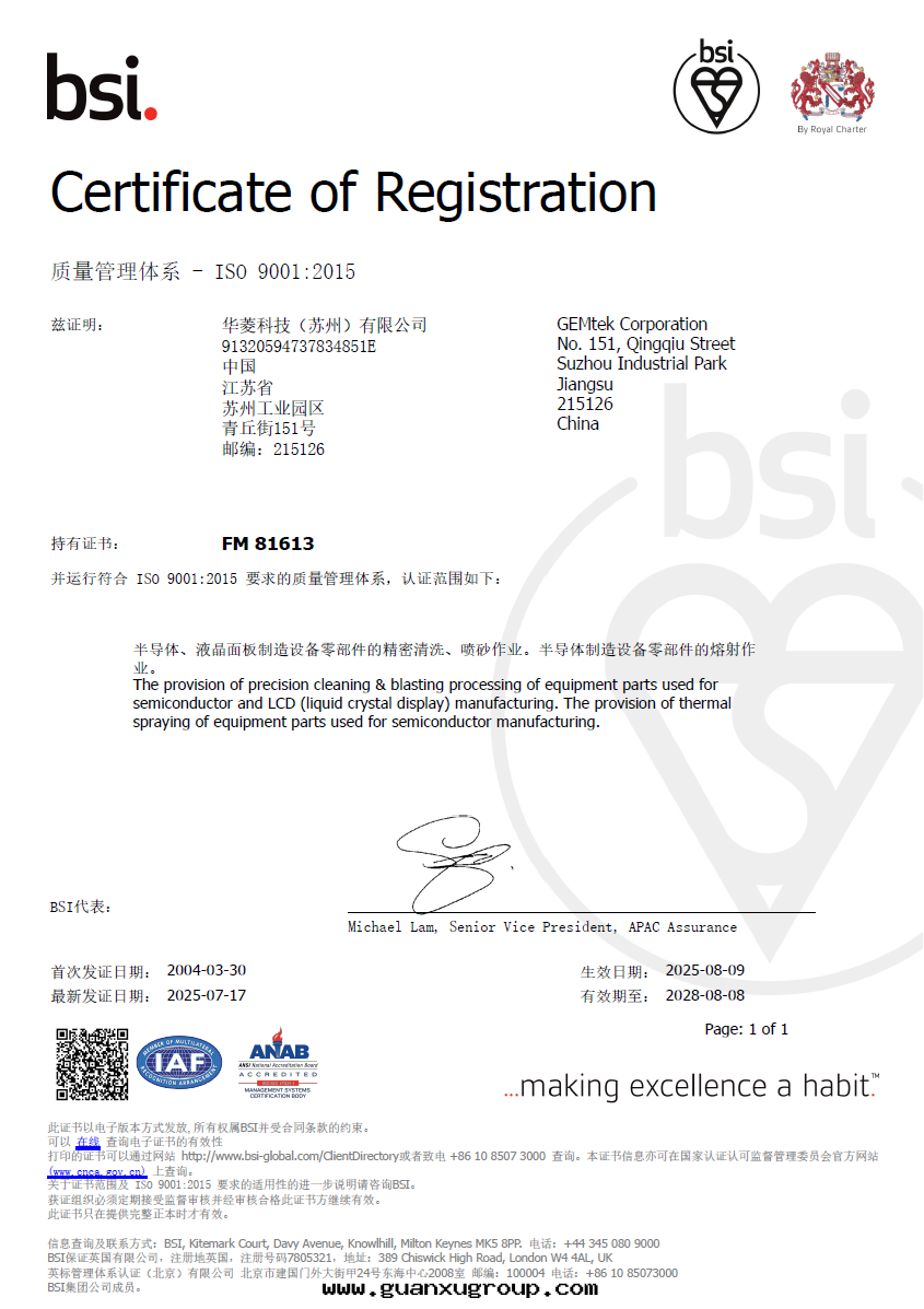 (1) 華菱科技于(yú)04.03.30 取(qǔ)得ISO-9001